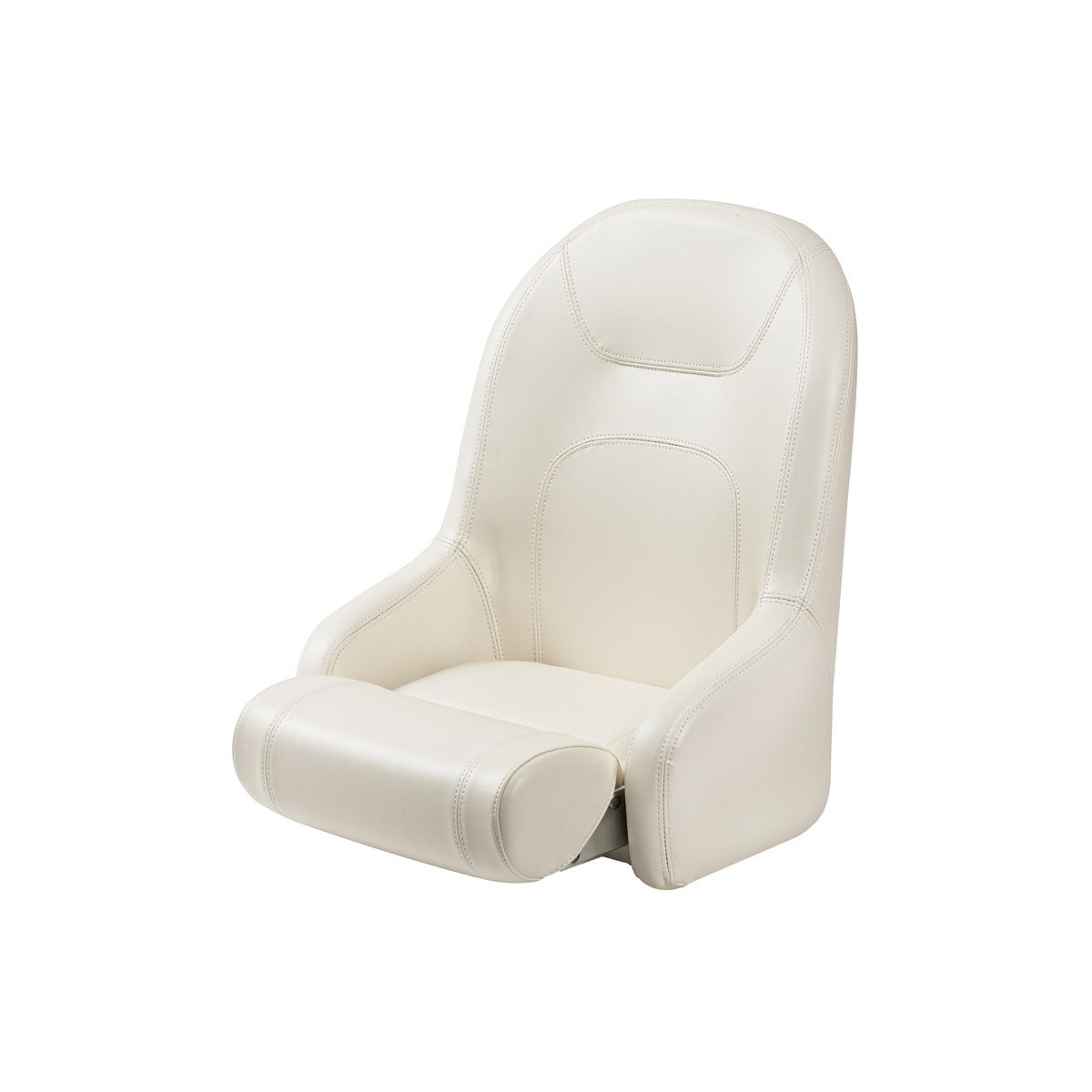 Der kompakte weiße Stuhl ist aus Kunststoff und Aluminium gefertigt und mit hochdichtem Vinylschaum gepolstert. Mit seinem Flip Up H51 können Sie in Sekundenschnelle von der Sitz- in die Stehposition wechseln.