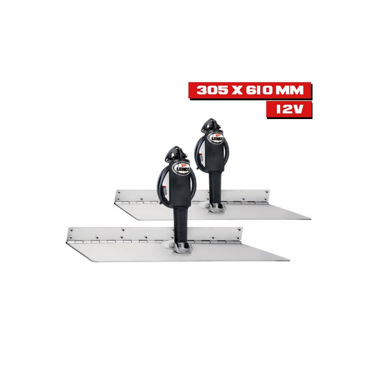 Die elektrischen Flaps Lenco SUPER STRONG mit einem Zylinder lassen sich auf den meisten Motorbooten von 7 bis 18 m, je nach Modell, installieren.