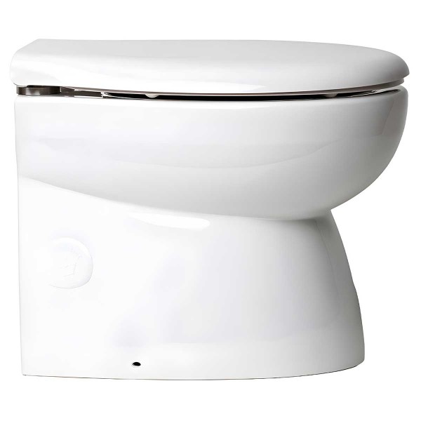 Das elektrische WC Luxury Low 12 V Osculati bietet mit seinem Spray Nozzle-Waschanschluss und dem Soft Close-Sitz optimalen Komfort an Bord.