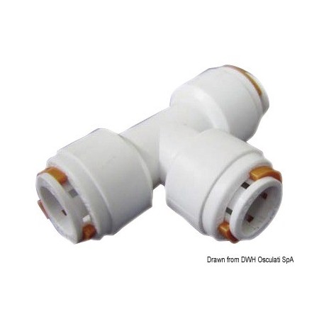 Sofortige Montage durch Clips. Ein einziger Druck des Rohrs auf den Fitting genügt zur Montage. Wiederverwendbare Fittings aus hochfestem, lebensmittelechtem, ungiftigem Kunststoff mit steifem, semi-Polyethylenrohr.