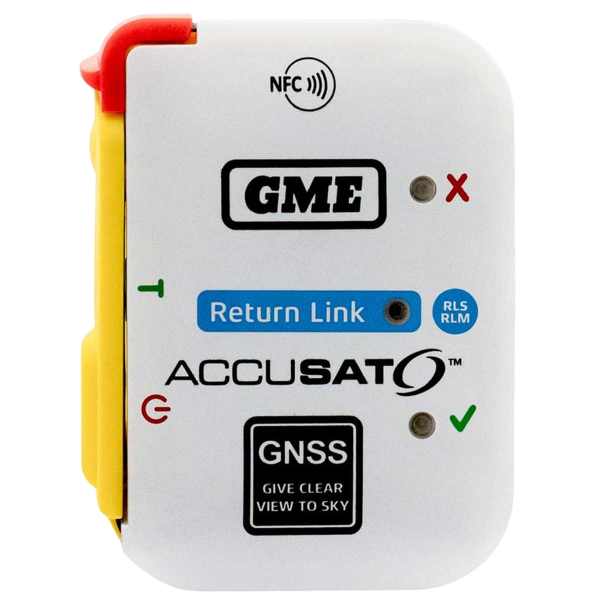 NFC + Accusat Connect-AnwendungDie MT620GR kommuniziert per NFC mit der GME Accusat Connect App (Android und iPhone). Praktisch, um den Batteriestatus abzufragen, Selbsttests zu starten und zu archivieren-oder die Beacon-Informationen zu überprüfen, ohne dass Sie das Gerät eingeschaltet lassen müssen.