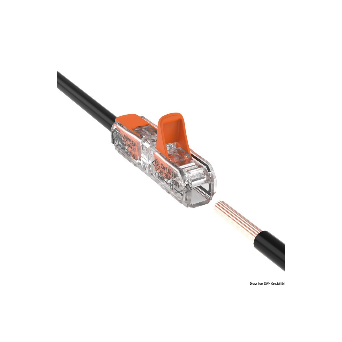 Die WAGO-Steckverbinder der Serie 221 ermöglichen dank eines praktischen Klemmhebels einen schnellen und sicheren Anschluss von Leitern aller Art. Sie lassen sich auf DIN-Schienen montieren oder verschrauben, wobei die Halterungen sowohl horizontal als auch vertikal angebracht werden können. Sie sind bis zu einer Umgebungstemperatur von 85 °C hitzebeständig.