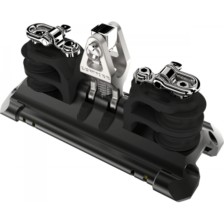 Der Gimbal richtet sich auf natürliche Weise nach dem Zugwinkel aus, was die Belastung verringert und die Leichtgängigkeit der Bewegung verbessert. Die 4 Steuerleinen führen die Tips sauber und halten einen klaren Weg zum Cockpit. Mit einer angegebenen Tragkraft von 900 kg und einem kompakten Format (162 x 71 mm) lässt sich dieser Schlitten problemlos in eine kompatible Schiene Lewmar Ocean integrieren.