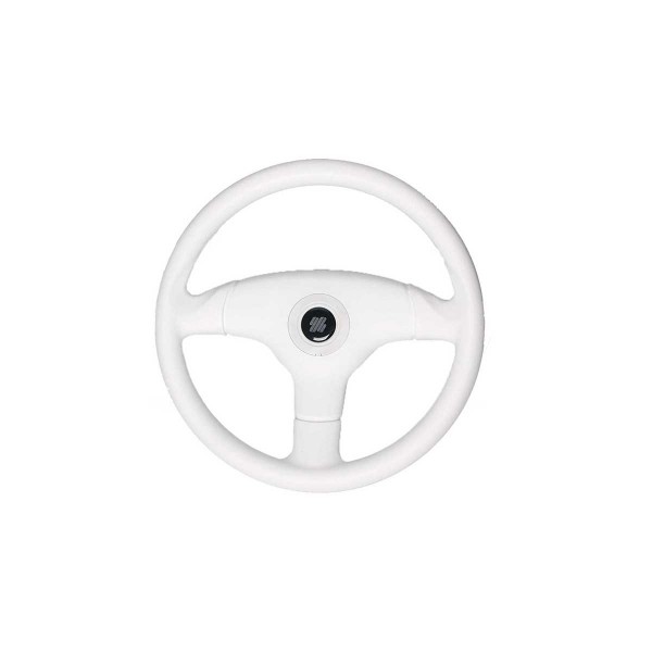 Das Lenkrad V60W Antigua der italienischen Marke Ultraflex ist mit 3 Speichen aus stoßfestem Thermoplast und einem Soft-Touch-Griff ausgestattet. Es verfügt außerdem über eine 3/4" -Bohrung, wobei Nabe und Radkappe im Lieferumfang enthalten sind.