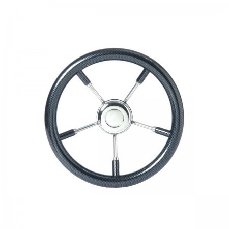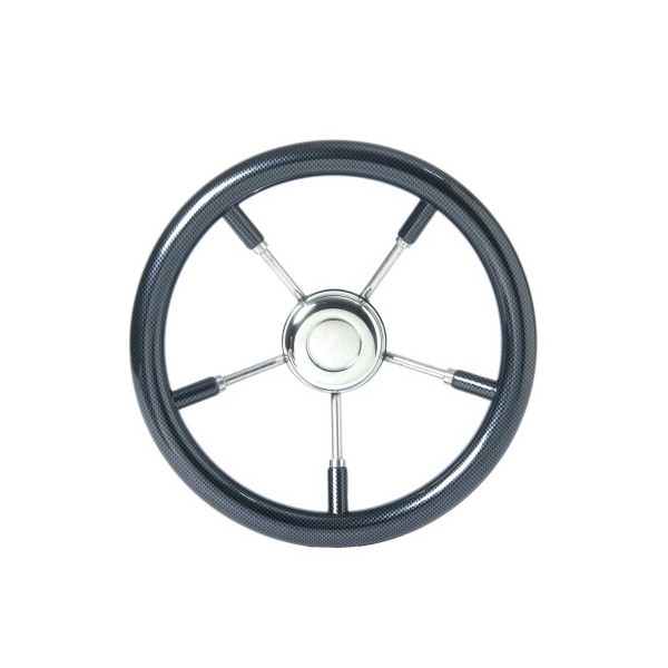 Das T9-Lenkrad mit Edelstahl-Speichen im Carbon-Look hat einen Universalkonus für die Kompatibilität mit den Kabeln Ultraflex, Morse oder Teleflex.