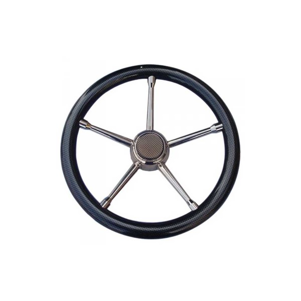 Das Lenkrad T17 Ø 35 cm aus Karbon und mit 5 Speichen aus Edelstahl passt perfekt zu Ihrer Steuerkonsole.