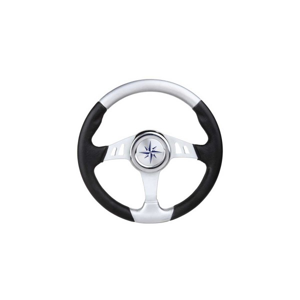 Das schwarz-silberne Skipper-Lenkrad mit silbernen Speichen und einem Durchmesser von 35 cm ist aus weichem Polyurethan gefertigt, um eine höhere Widerstandsfähigkeit zu gewährleisten.