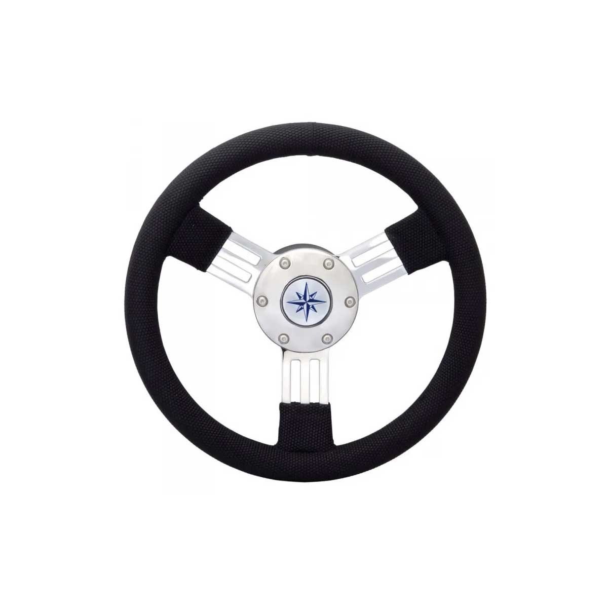 Das Pegaso-Lenkrad bietet einen Kranz aus weichem Polyurethan in Verbindung mit Speichen und einer zentralen Nabe aus hochglanzpoliertem Edelstahl.