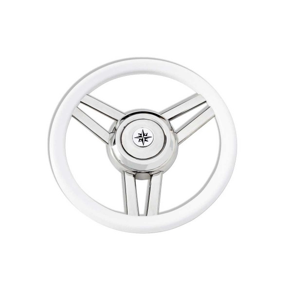 Das Steuerrad T25 mit weißem Polyurethankranz und 3 Speichen aus rostfreiem Stahl bietet Ihnen im Alltag einen hohen Steuerkomfort.