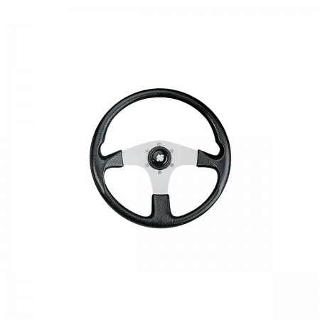Das Corsica-Lenkrad Ultraflex mit seinem schwarzen PVC-Kranz und den silbernen Speichen aus eloxiertem Aluminium bietet einen Grip mit weicher Haptik für den täglichen Steuerkomfort.