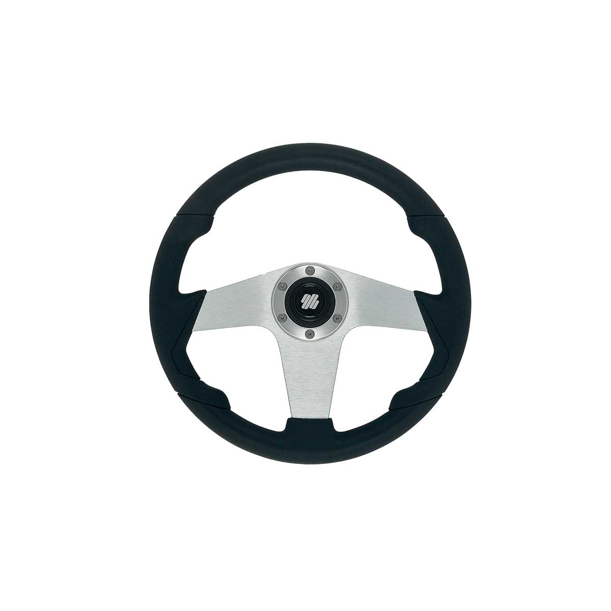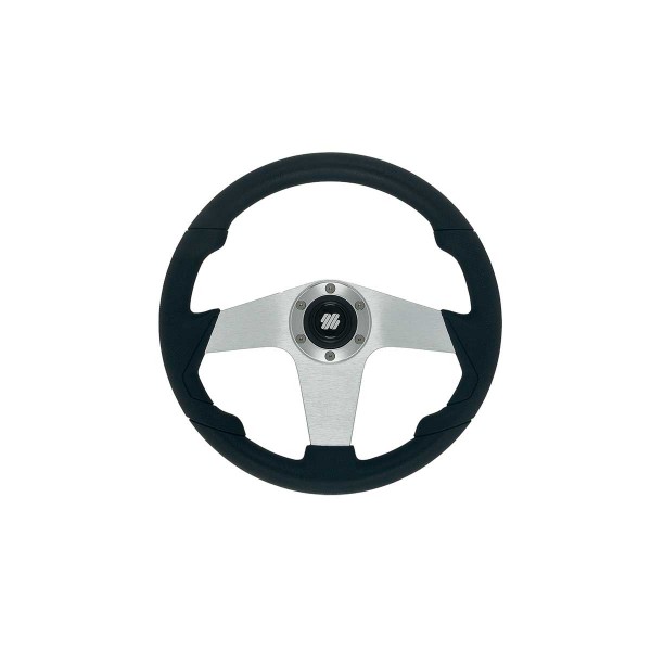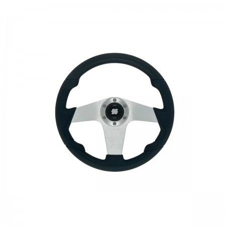 Das 3-Speichen-Lenkrad aus Pianosa-Aluminium mit seinem schwarzen Polyurethankranz in Lederoptik vereint Eleganz mit verbessertem Fahrverhalten an Bord. Darüber hinaus sorgt sein universeller 3/4"-Konus für Kompatibilität mit vielen Lenkradkabelmodellen.