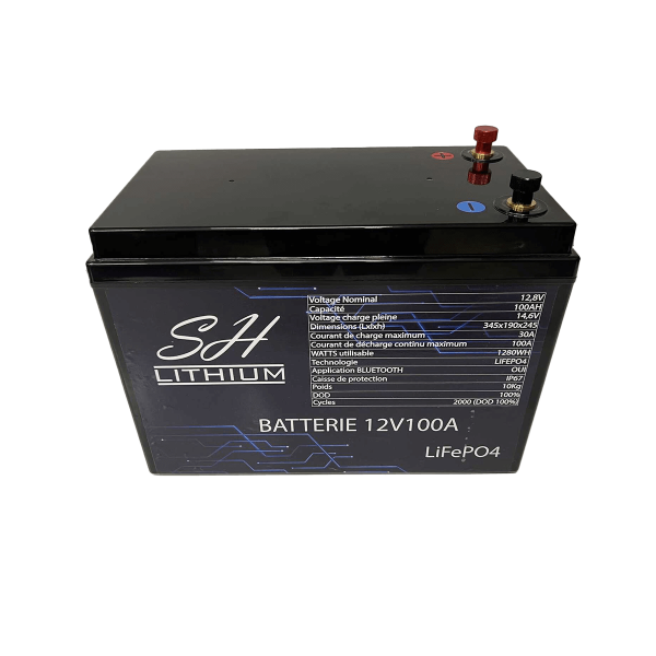 Die Lithiumbatterie LifeP04 12V 100A SH LITHIUM ist in einem klassischen Monoblockformat in einer wasserdichten IP67-Schutzbox verpackt.