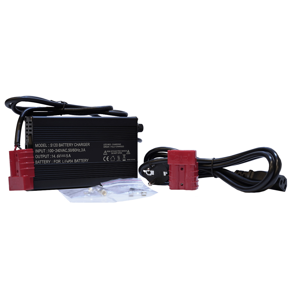 Hier mit 5A. Es wird von SH LITHIUM für die LifeP04 Brushless-Batterie 12V 50A empfohlen. Hier mit Ösenklemmen zum Crimpen.