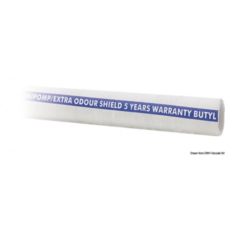 Sehr robuster Spiralschlauch aus glattem Gummi, der zum Anschluss des Toilettenentsorgungssystems auf Schiffen verwendet wird. Er verhindert die Ausbreitung von Gerüchen, die durch die Toilettenentleerung entstehen. Die verwendeten Materialien haben eine glatte Innenfläche, sind antiklebend, geruchsneutral, resistent gegen die Bildung von Bakterienflora, Säuren und Basen. Der Reibungskoeffizient und die Durchlässigkeit sind gering.