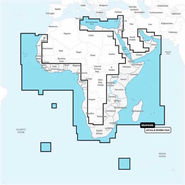 Wählen Sie aus den verschiedenen verfügbaren Regionen bezüglich des geografischen Gebiets von Afrika und des Nahen Ostens in der Garmin Navionics + Reihe . Die genauen Abdeckungen der verschiedenen Karten finden Sie unten zum Herunterladen.
