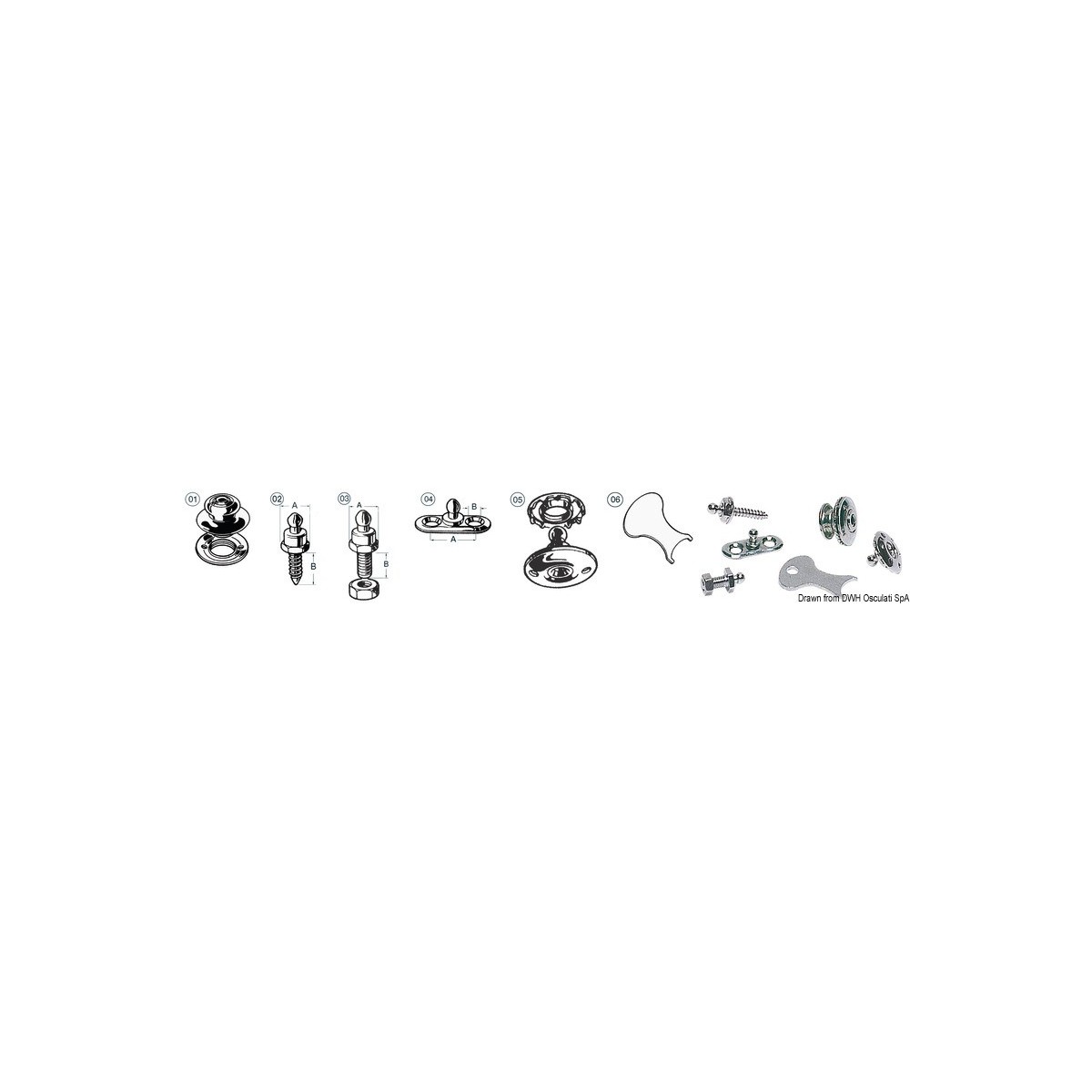 Tomax männliche Knöpfe mit Schraubgegenhalter aus vernickeltem Messing, Druckfunktion (x25). Federblock auf dem weiblichen Knopf.