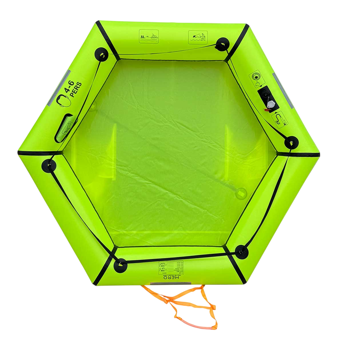 Sichtbarkeit und RobustheitDas gelbe-fluoreszierend grüne TPU-Gewebe ist darauf ausgelegt, schneller entdeckt zu werden. Die vollständig verschweißte Herstellung erhöht die Haltbarkeit, und die sechseckige Form mit verstärkten Ecken sorgt für eine stabile Basis mit einem einzigartigen Auftriebsrohr.