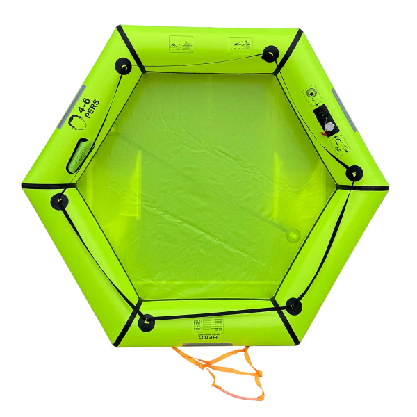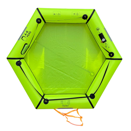 Ihr sehr kompaktes Format für 4 bis 6 Personen und ihr Gewicht von 10 kg machen sie leicht zu verstauen, während ihr vollständig verschweißtes TPU-Gewebe in hoch sichtbarem Gelb-Grün die Robustheit und Auffindbarkeit erhöht. Die sechseckige Form und das einzigartige Rohr sorgen für eine beruhigende Stabilität auf See.