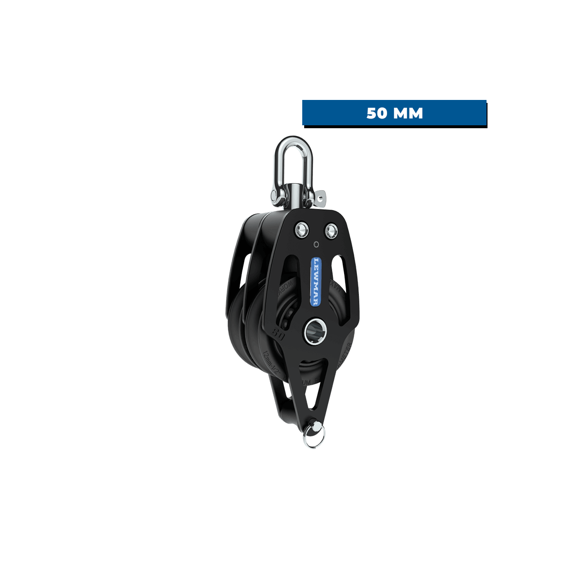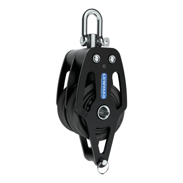 Der HTX 50 mm Doppelblock und Ringot Lewmar: ein robuster und leistungsstarker Beschlagsblock, der für häufiges Einstellen und hohe Belastungen konzipiert wurde und nur 232 g auf die Waage bringt. Aluminiumwangen, zentrales Ringlager und seitliche Kugeln sorgen für eine hervorragende Leistung, bis zu 800 kg Arbeitslast.
