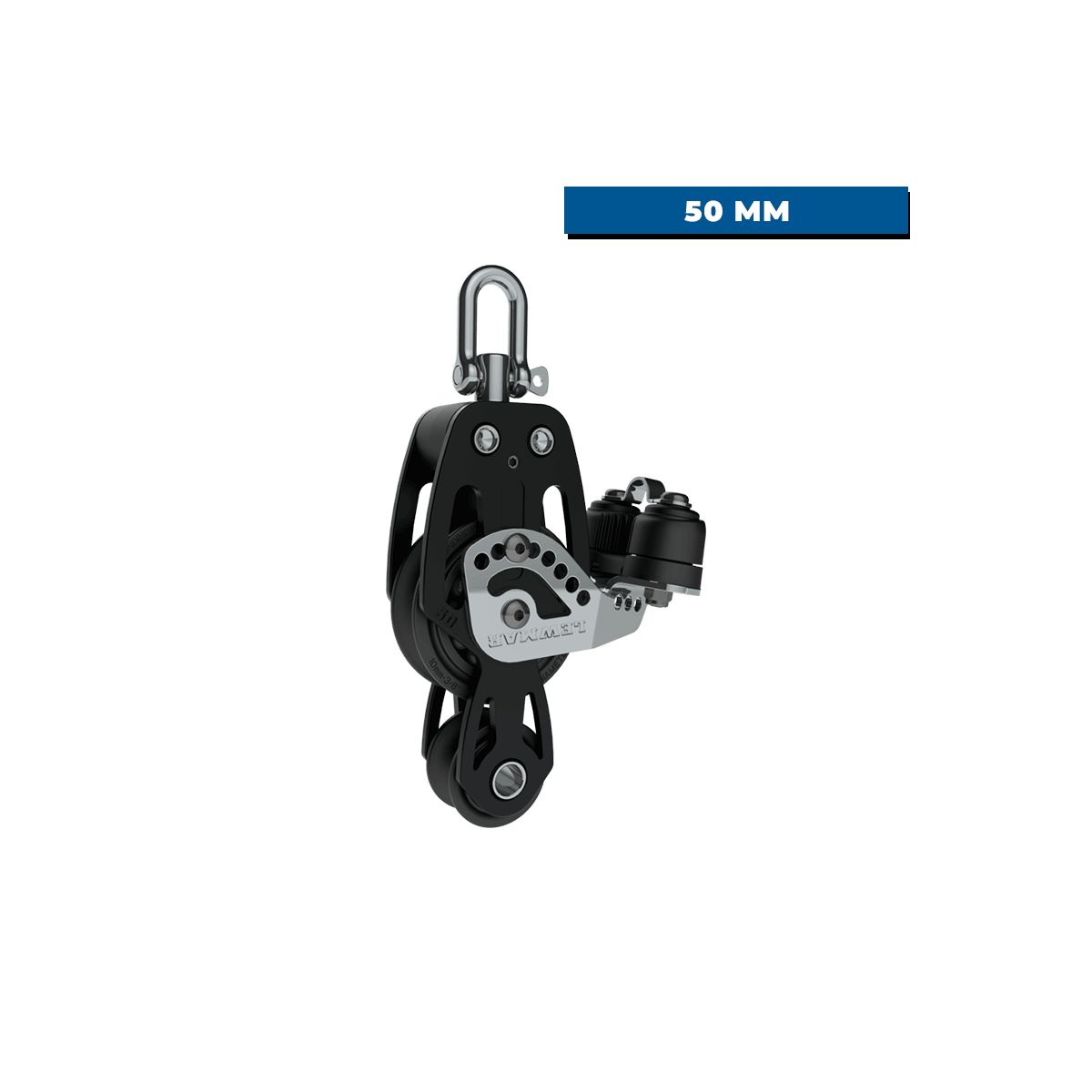Geigenrolle mit Klampe Lewmar HTX 50 mm, konzipiert für häufige Einstellungen und hohe Belastungen. Die robuste Konstruktion und die Lager (Zentralring + Seitenkugeln) sorgen für eine reibungslose Rotation und einen optimalen Wirkungsgrad. Mit 335 g ist sie für eine Arbeitslast von 800 kg ausgelegt, während die Klampe eine zuverlässige Blockierung bis zu 120 kg gewährleistet.