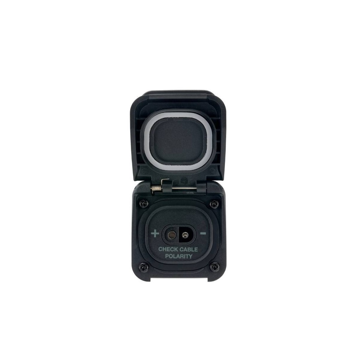Der Stecker verwendet einen SAE-Stecker und akzeptiert hohe Stromstärken für eine widerstandsfähige Solaranlage. Das Produkt ist für eine Gleichstromversorgung vorgesehen, mit Unterputzmontage und einem verriegelbaren Deckel, den Sie bei Nichtgebrauch geschlossen halten können.