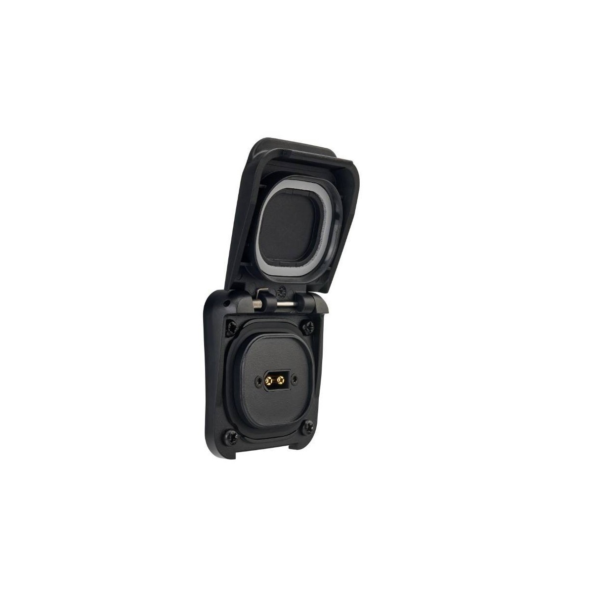 Unterputzmontage und Abdichtung an der VorderseiteDie Schutzart bezieht sich auf die Vorderseite. Sie wird mit IP68-IP69K für den geschlossenen Deckel angegeben, wenn die Installation auf einer ebenen, glatten und nicht porösen Oberfläche erfolgt und die Dichtung gut zusammengedrückt ist. Bei Verwendung ist das Produkt mit IP65 klassifiziert, wenn ein XT60W-F Stecker vom Typ Wasserdicht montiert ist.