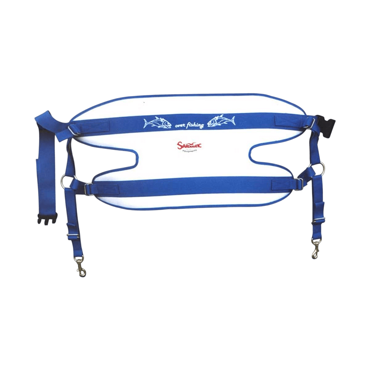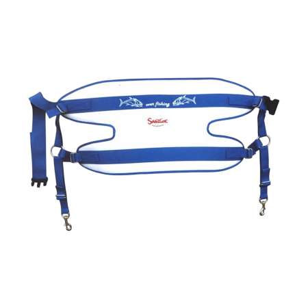 Doppeltes Sardamatic-Gurtband, das für das Big Game- und Standfischen-up entwickelt wurde. Es ist einfach einzustellen und zu verwenden, entlastet den Angler effektiv und optimiert die Traktion während des Drills.