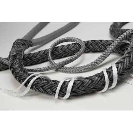 Wasserabweisendes, leichtes Geflecht mit sehr hoher Festigkeit und geringer Bruchdehnung.