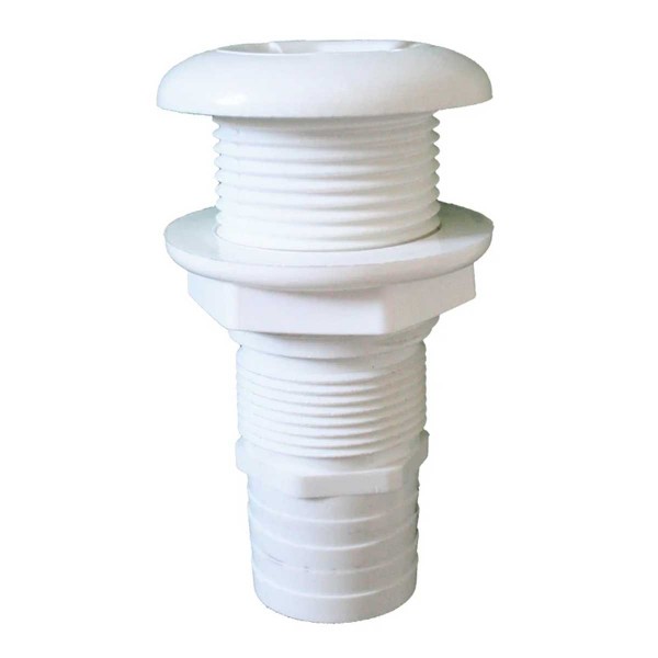 Die geriffelte Schalendurchführung-mit Bund Ø70 mm für Rohr Ø38 mm ist aus Polyamid gefertigt. Sie hat ein 1 1/2"-Gewinde, eine Länge von 121 mm und eine Gewindelänge von 50 mm.