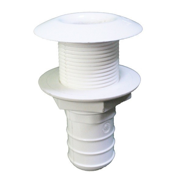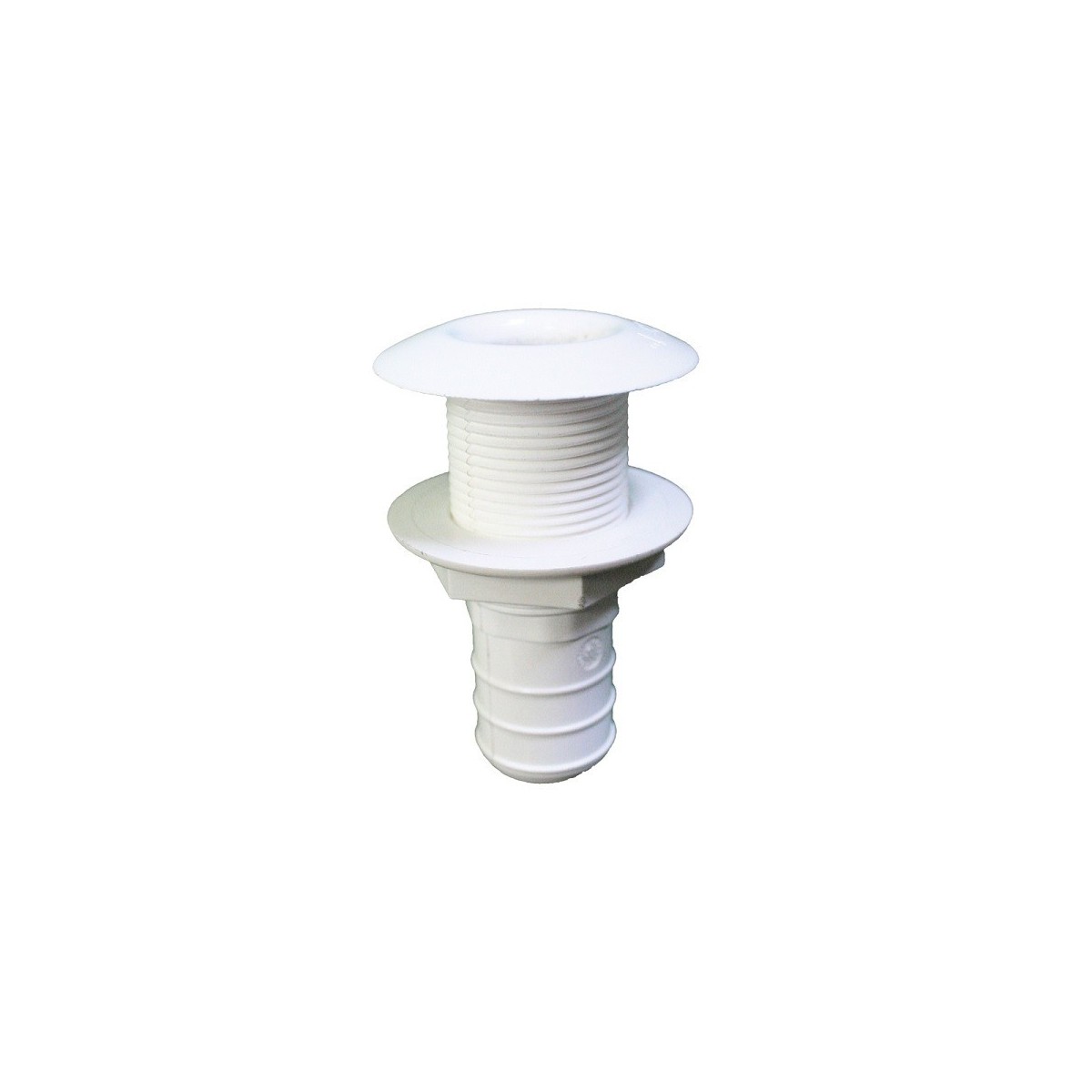 Die geriffelte Schalendurchführung-mit Flansch Ø45 mm für Rohr Ø21 mm ist aus Polyamid gefertigt. Sie hat ein 3/4"-Gewinde, eine Länge von 89 mm und eine Gewindelänge von 39 mm.