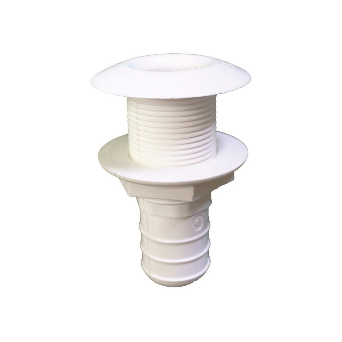 Die geriffelte Schalendurchführung-mit Bund Ø53 mm für Rohr Ø25 mm (Spreizstopfen für Ø22 mm als Option) ist aus Polyamid gefertigt. Er hat ein 7/8"-Gewinde, eine Länge von 80 mm und eine Gewindelänge von 39 mm.