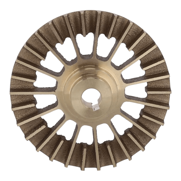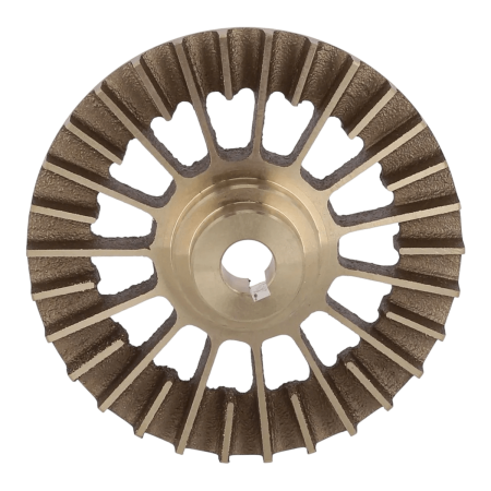 Pumpenlaufrad PC32B16 Forani & Pecorari aus Bronze, ein Ersatzteil für Wasseraggregate, das für eine bi-direktionale Drehrichtung ausgelegt ist. Ideal, um ein verschlissenes Spinnrad zu ersetzen. Es hilft, wieder einen stabilen Durchfluss, einen guten Wirkungsgrad und einen zuverlässigen Betrieb der Schiffspumpe an Bord zu erreichen.
