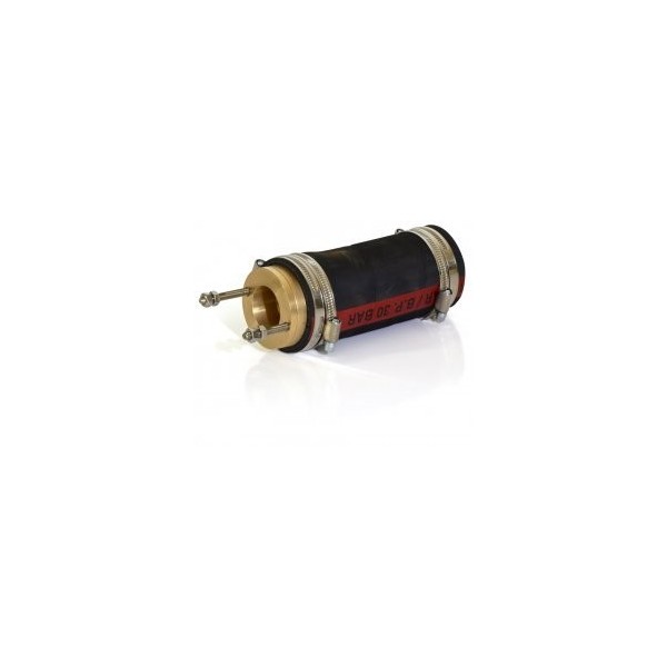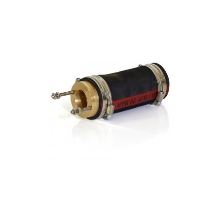 Stopfbuchspackung für schwimmende Welle. Gehäuse aus HR-Messing. Lieferung mit flexibler Muffe, Schellen, Teflongeflecht und Schrauben.