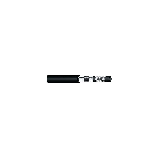 - Schwarzer, mit synthetischem Gewebe verstärkter NBR-Schlauch, glattes Aussehen, hält Flüssigkeiten von -20° bis +70°C stand.