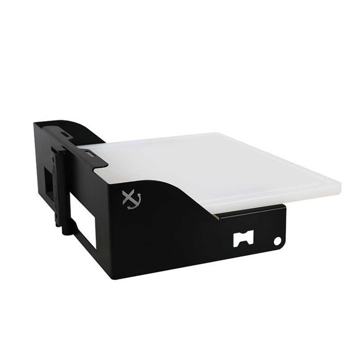 Das Schneidebrett Seanox auf schwarzem Schieber ist ideal, um Köder und Fische an Bord zuzubereiten. Es wird mit einer Halterung aus epoxidbeschichtetem Edelstahl und einem Tablett aus Polyethylen geliefert.