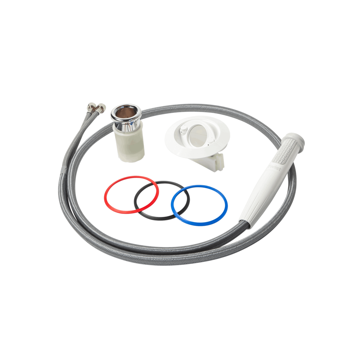 Die Handbrause wird mit einer geraden verchromten oder geneigten Halterung geliefert und ist dank des Deck Protect Verschlusses deckelfrei.